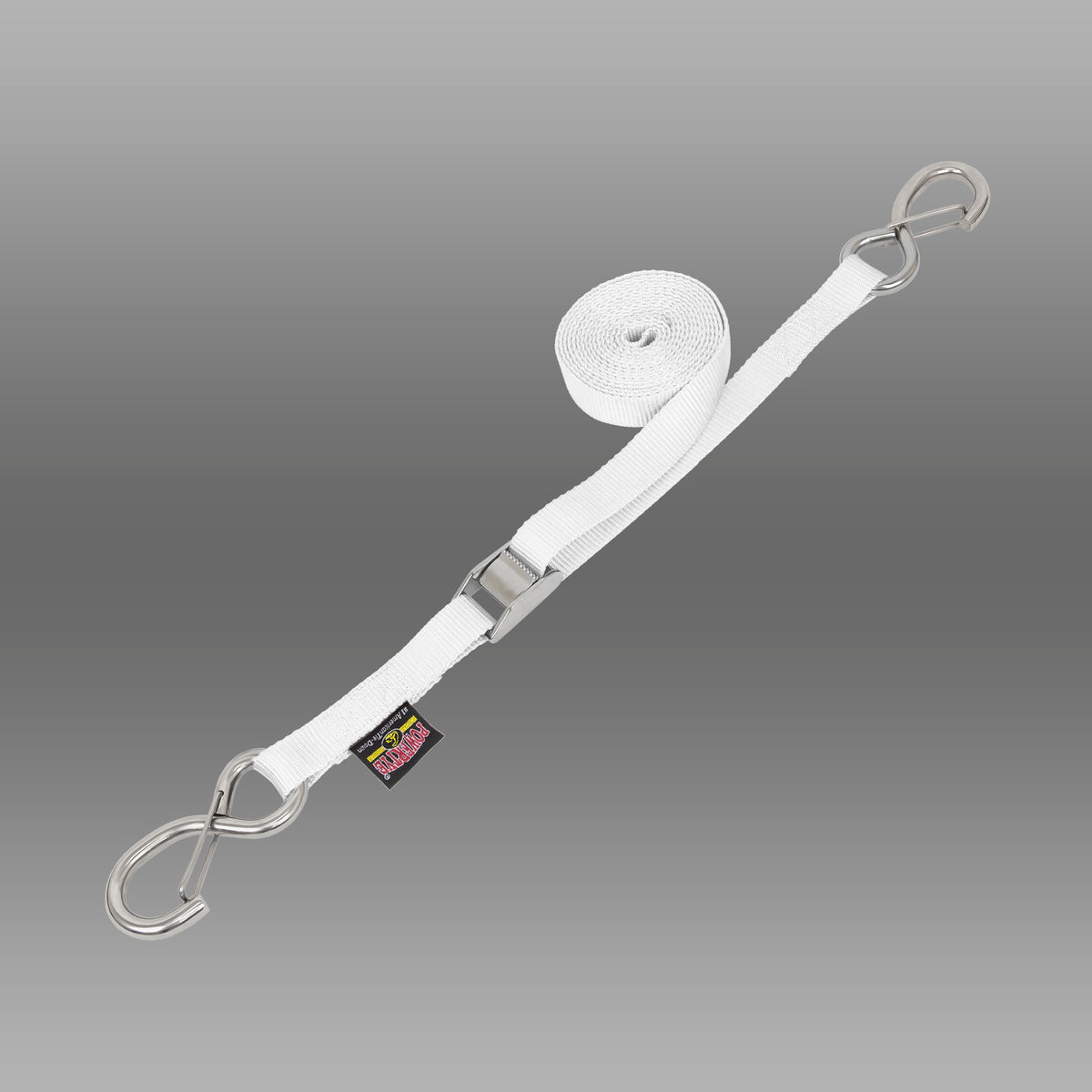 1in STAINLESS STEEL Cam Buckle Tie-Down Straps feature a fully Stainless Steel Cam buckle for superior durability in harsh marine environments. Great for use in boats, trucks, trailers, or wherever you need durable and easy pull straps to tie-something down. This version comes with STAINLESS STEEL LATCH HOOKS that are shaped just like our Stainless S-Hooks, but with a Stainless Steel metal latch to keep the hook attached. Available in lengths from 3ft to 15ft. Sold individually.